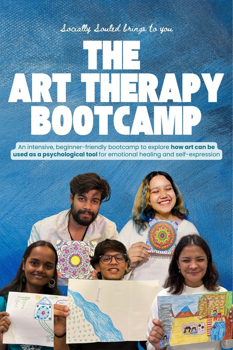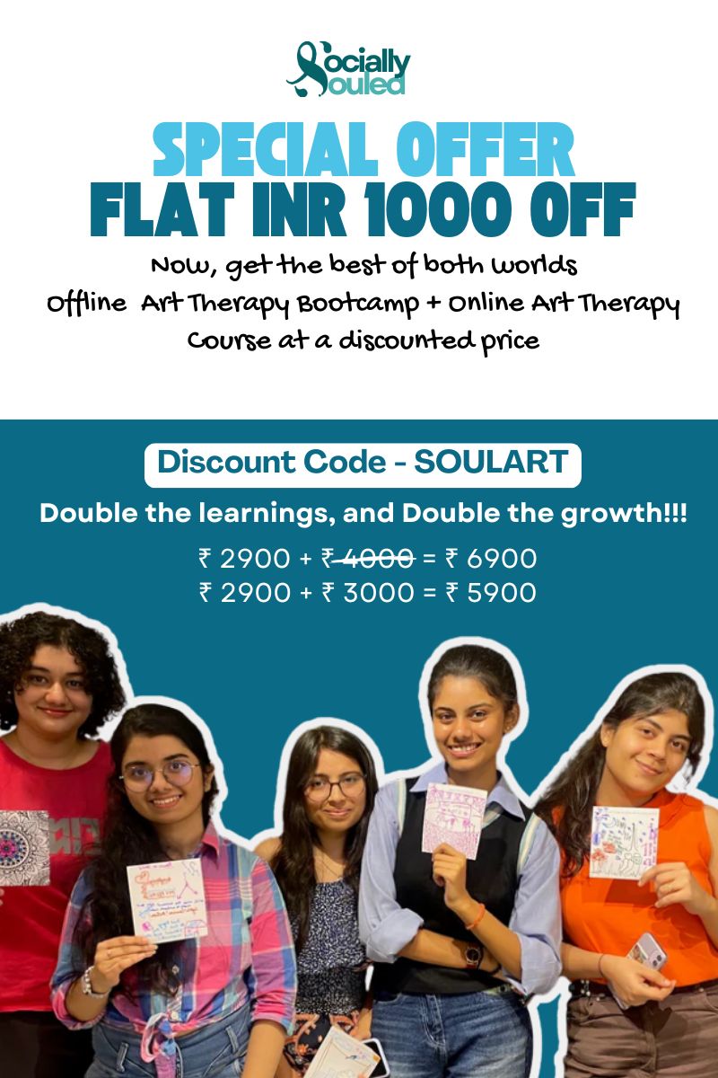 Socially Souled has been one of my go to places when it comes psychology. One of the therapy I learnt was Art Therapy, where we got to express our emotions through the colour shades that reflected the emotions based on the colours which made it creative at the same time . We heard music and coloured at the same time in the Mandala art therapy book: It was not just about colouring the book but also learning about how to regulate your emotions and feel them completely and ways to fix your mood. Thank you Socially Souled for teaching us Art Therapy in such a beautiful way.